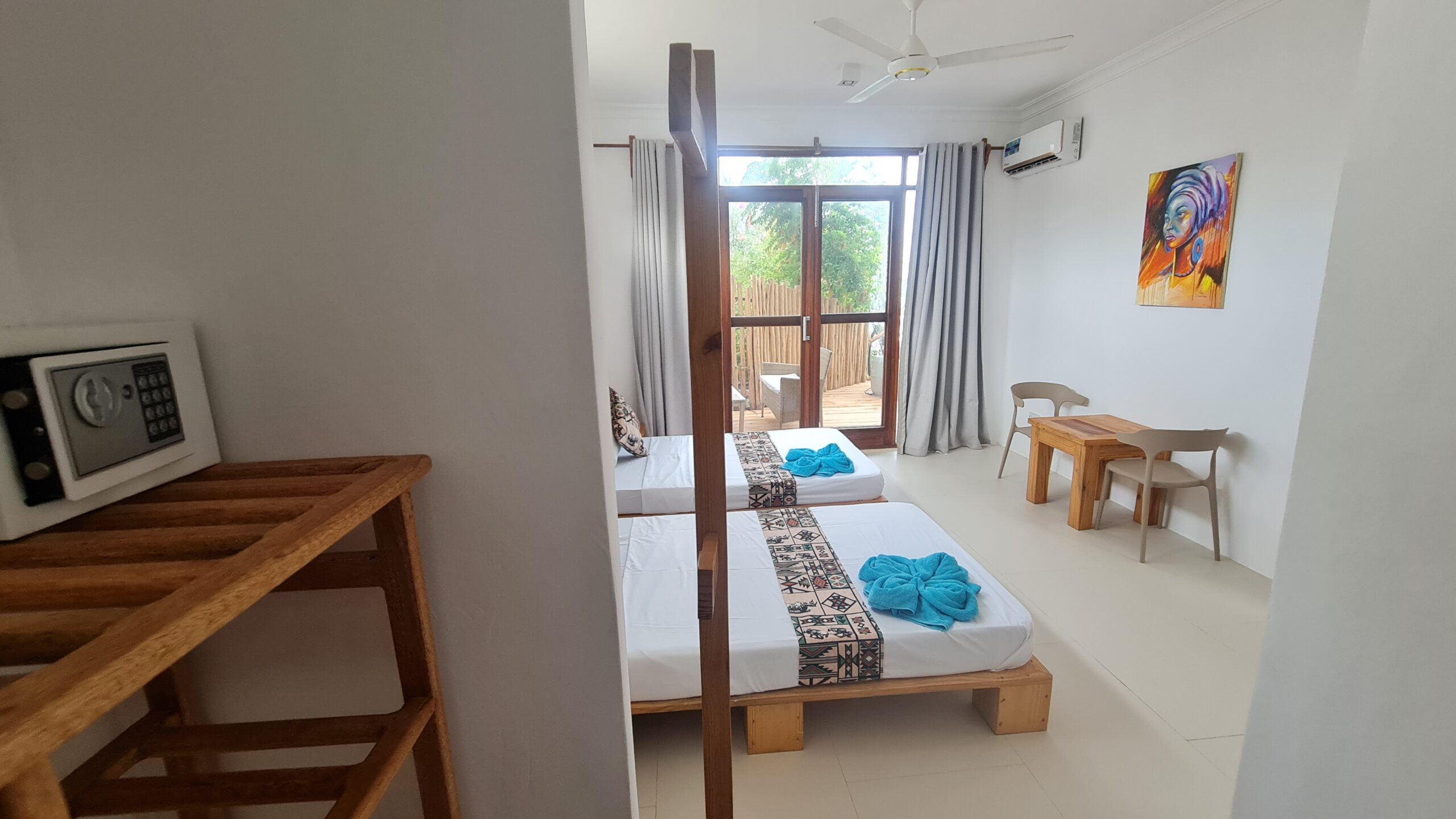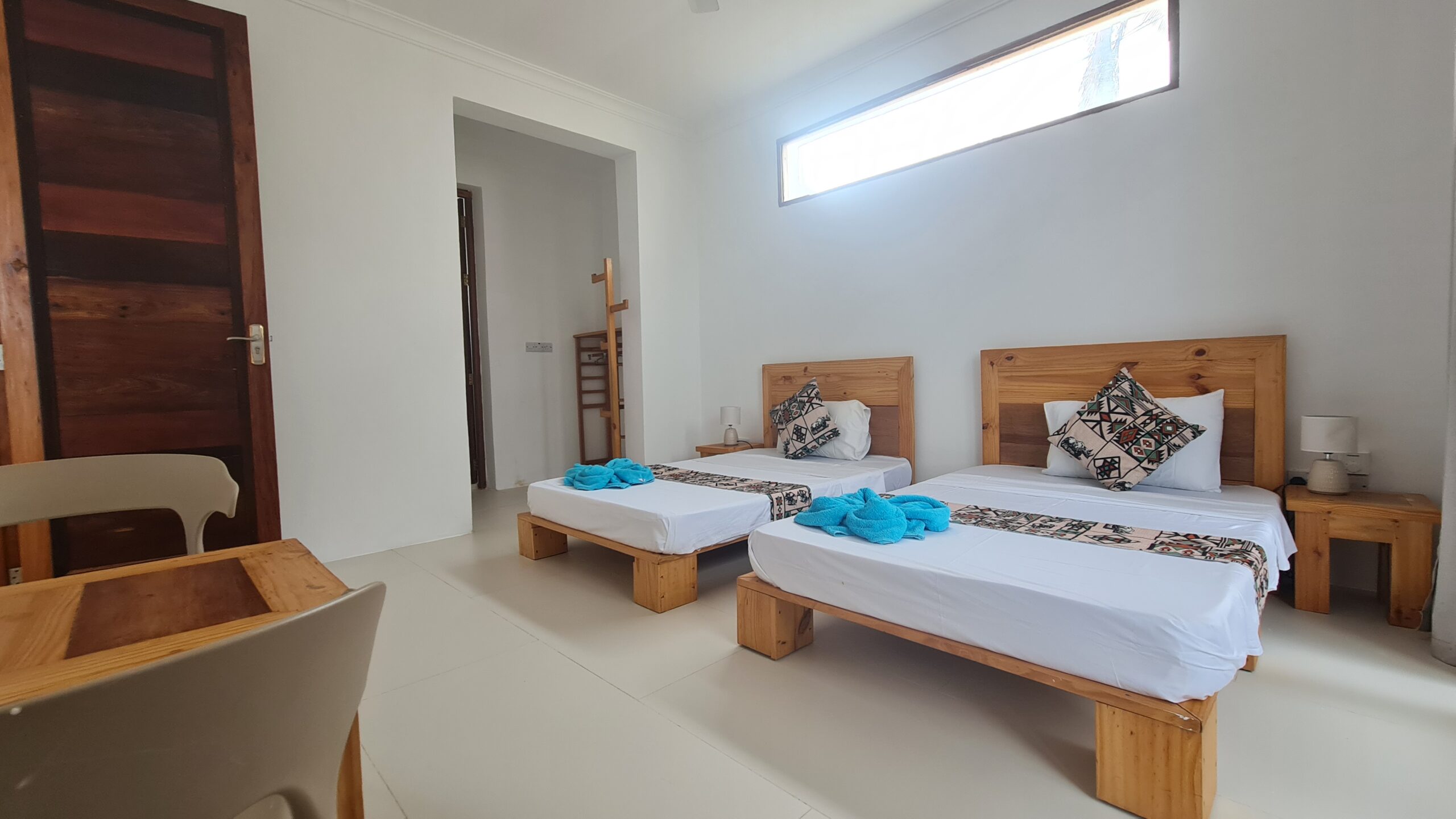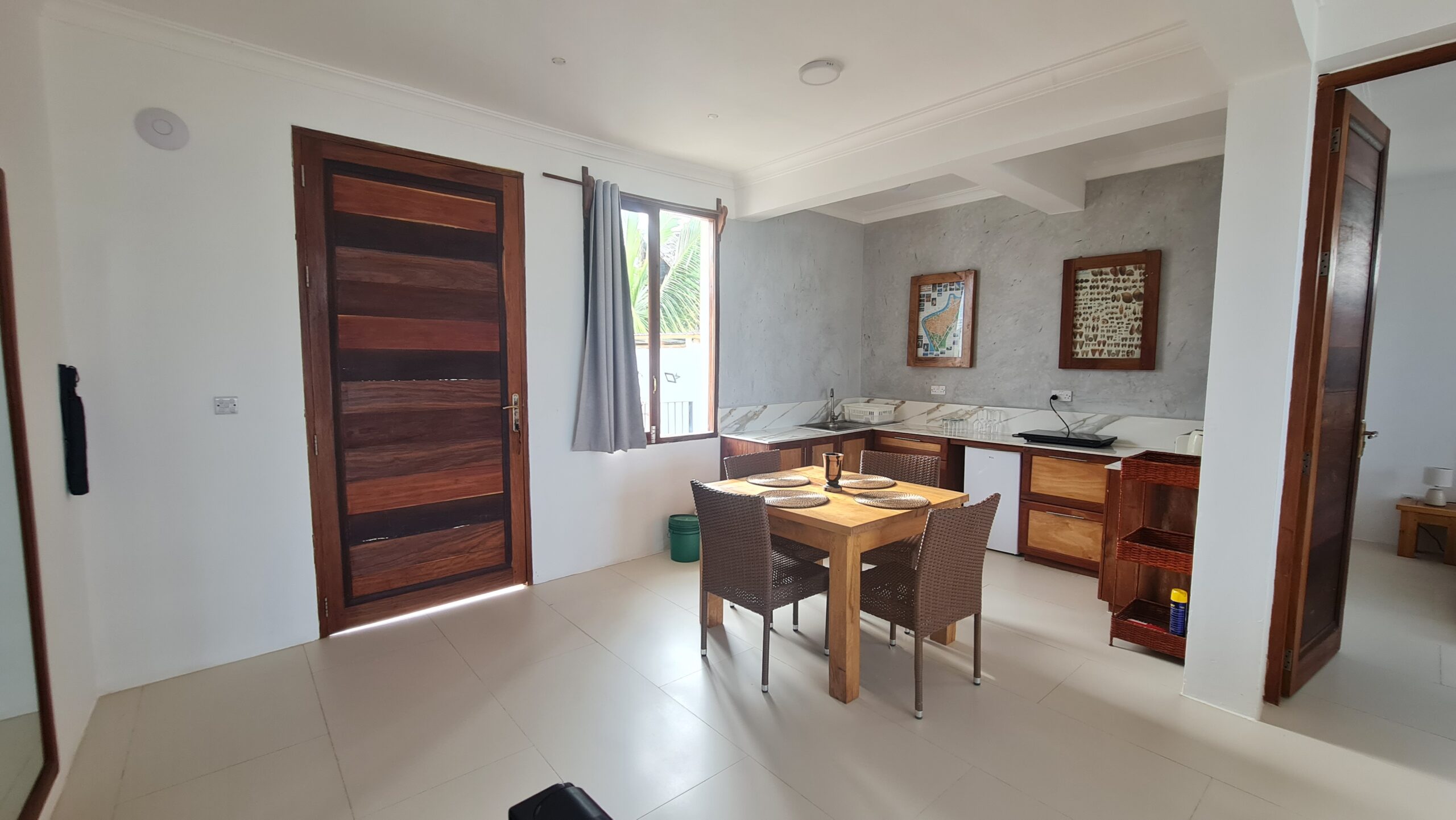Stay in the Shira Apartment, a stylish ground-floor retreat featuring two spacious double bedrooms, each with a private ensuite bathroom for ultimate privacy. The apartment boasts a fully equipped modern kitchen, perfect for preparing meals, and a comfortable dining and living area where you can unwind after a day of island adventures. For those who do not like to cook, we have our restaurant with amazing food and drinks served by our chefs from 8 AM unill 10 PM.